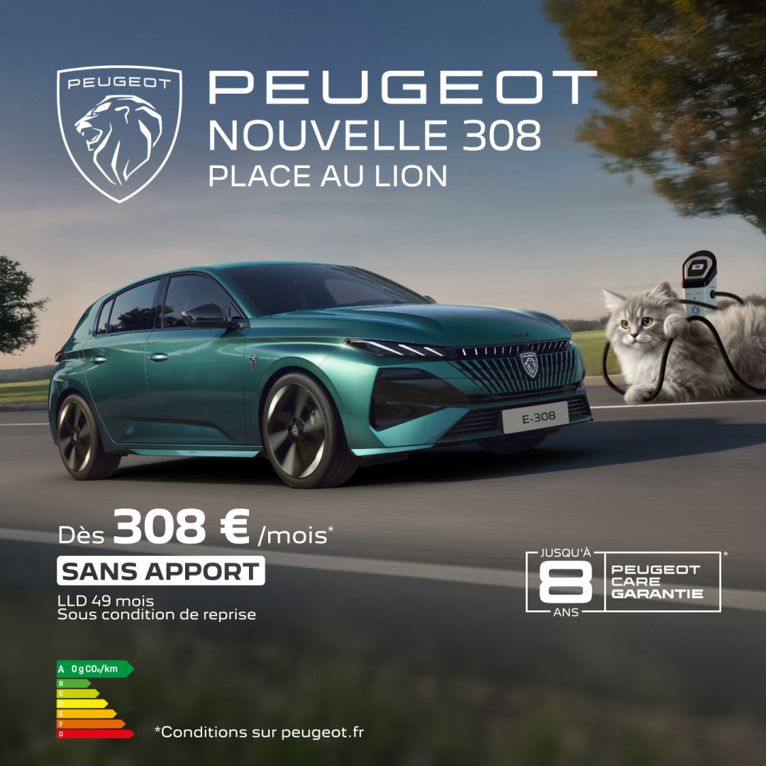 Place au lion : Profitez de la Nouvelle Peugeot 308€ dès 308€/mois sans apport(3).