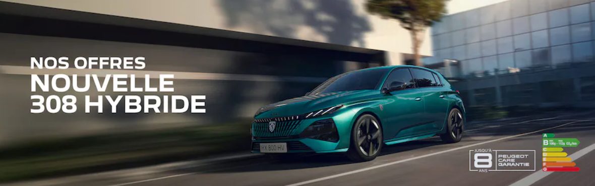 (3) Exemple pour une location longue durée (LLD) d’une 308 MV Style Hybrid 145 ch e-DCS6 neuve, hors option. Montants exprimés en TTC hors autres prestations facultatives.Offre non cumulable, réservée aux particuliers, sous condition de reprise. Valable pour toute commande du 01/01/2026 au 02/02/2026 auprès du réseau Peugeot participant. Sous réserve d’acceptation du dossier par CREDIPAR, loueur et SA au capital de 138.517.008 €, RCS Versailles n° 317 425 981, ORIAS 07004921 (www.orias.fr), 43 Rue Jean Pierre Timbaud 78300 POISSY.